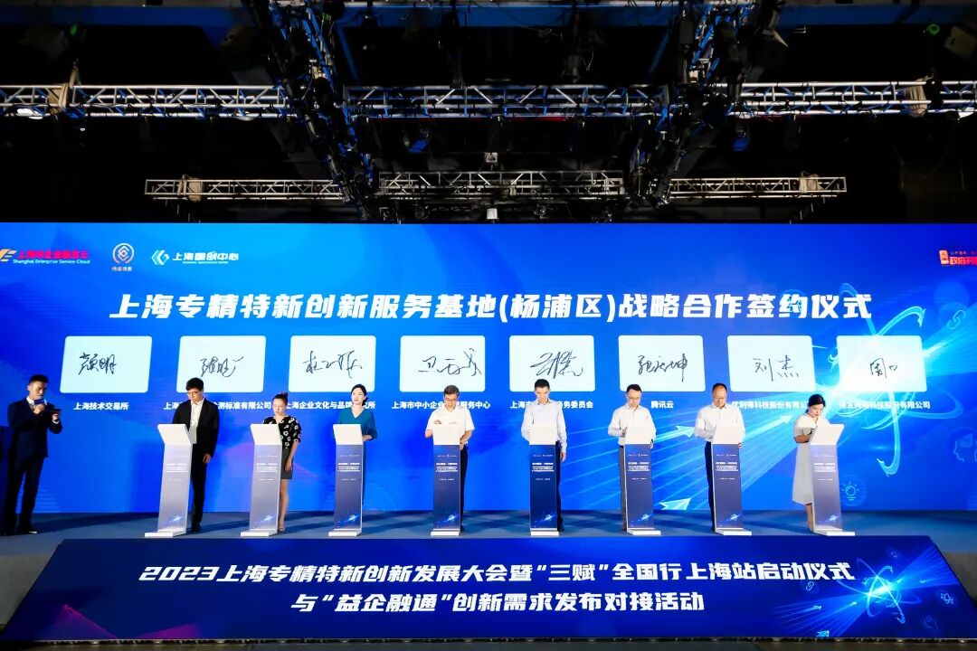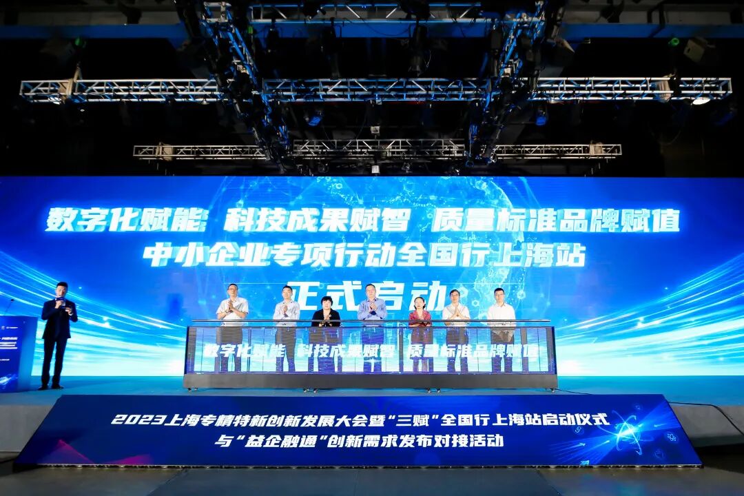 近日,2023上海专精特新创新发展大会暨“三赋”全国行上海站启动仪式与“益企融通”创新需求发布对接活动在杨浦区时尚中心成功举办。中国中小企业发展促进中心主任单立坡视频致辞,市经济信息化委副主任、一级巡视员戎之勤,杨浦区副区长施方出席并致辞,共同启动“三赋”全国行上海站,为上海专精特新创新服务基地(杨浦区)揭牌。