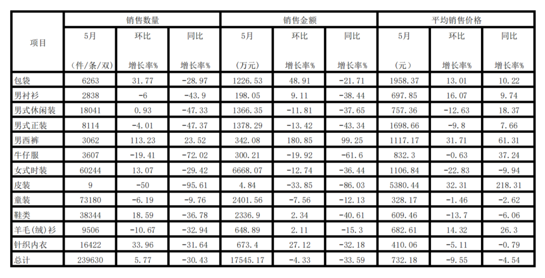 产经新闻 | 2023年5月份上海服装行业协会网络商场销售情况