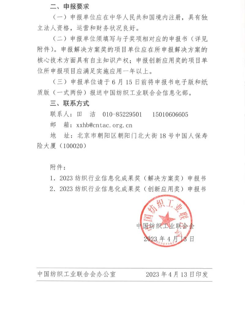 首页 / 要闻 / 连锁经营 / 2023年度纺织行业信息化成果奖申报开启