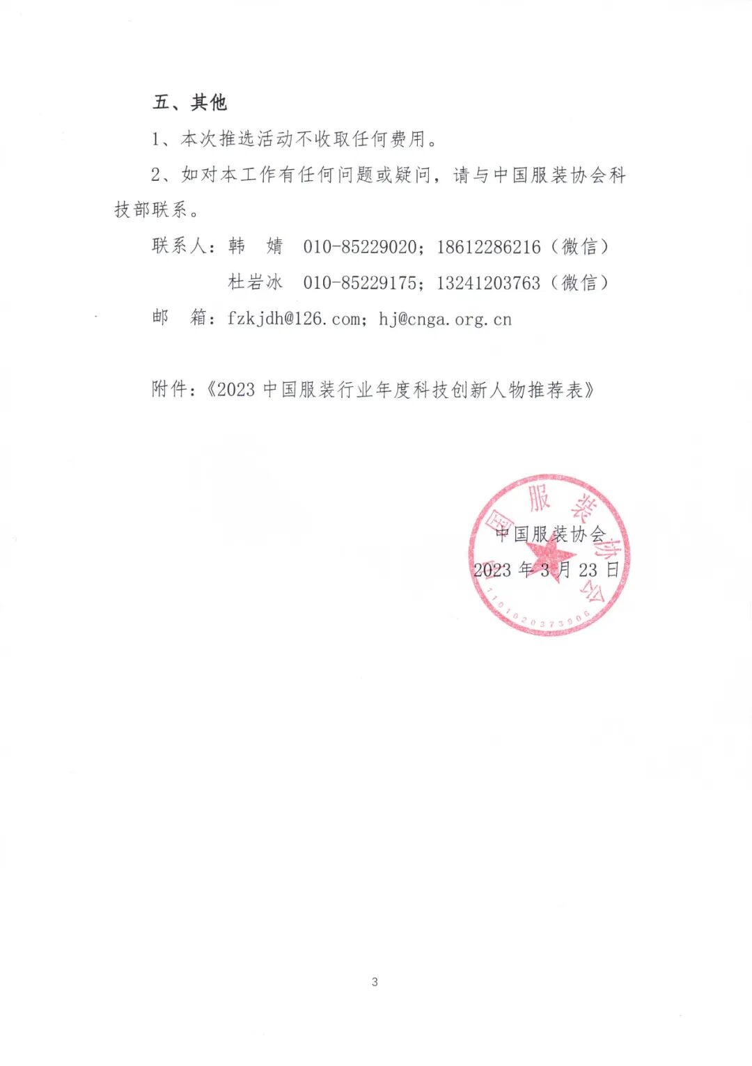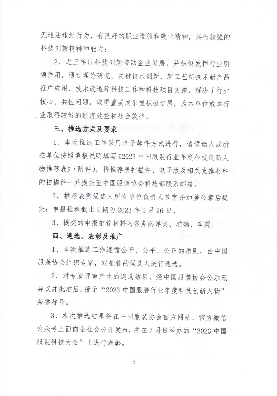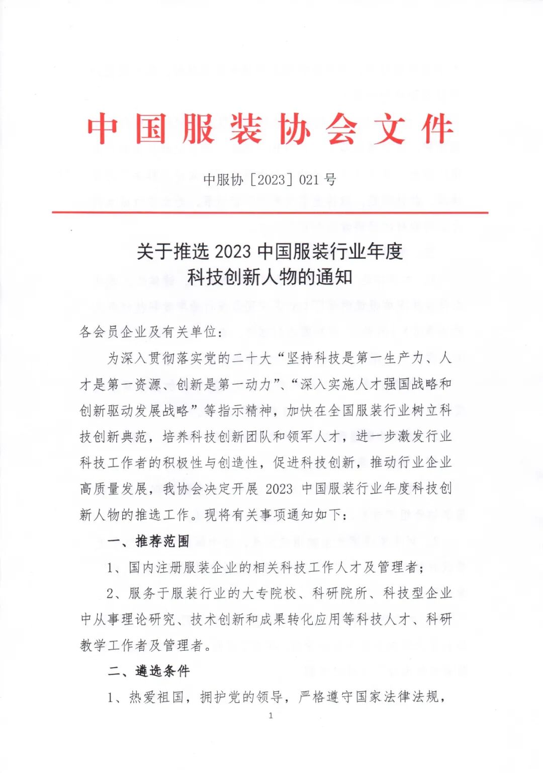 / 关于推选2023中国服装行业年度科技创新人物的通知