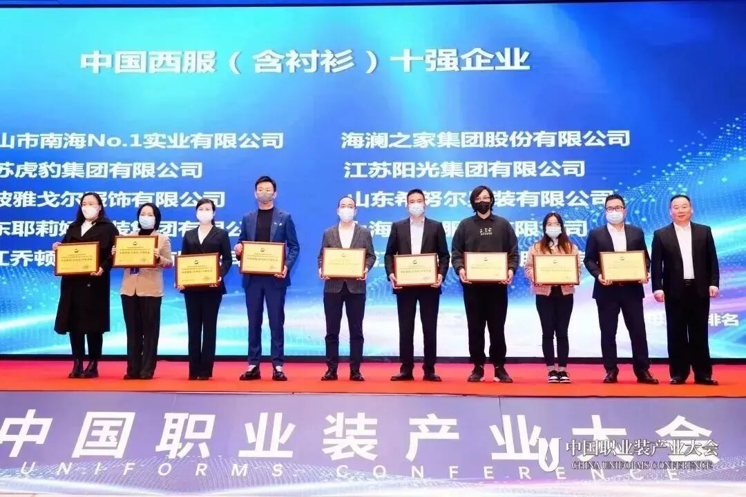同时,为充分发挥职业装优势企业的榜样作用,展示中国职业装的崭新形象,第四届中国职业装优势企业评价推介活动评审结果也于大会现场揭晓。中国服装协会常务副会长杨金纯宣读“关于公布第四届中国职业装优势企业评价推介活动评审结果的通知”,入选“中国职业装十大领军企业”“中国职业装五十强企业”“中国职业装十大新锐企业”“中国校服十强企业”“中国功能防护服十强企业”“中国西服(含衬衫)十强企业”名单的企业代表先后登台领奖,与嘉宾们一同见证荣耀时刻。(文末附第四届中国职业装优势企业评价推介活动评审结果)