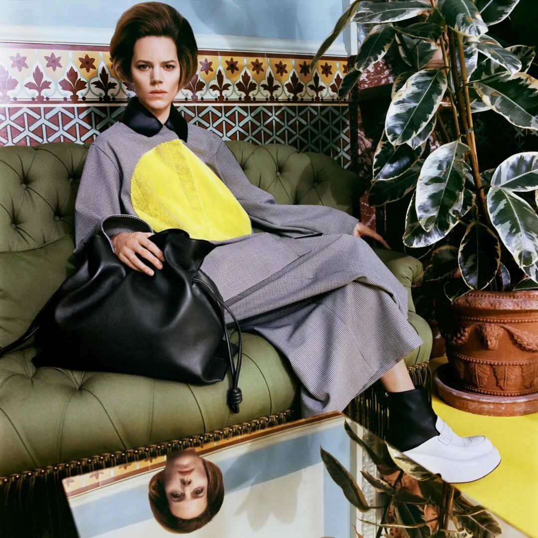 Hermès在本季依旧秉承着过去以往的简约穿搭的风格,坚持设计的实用性原则,无论是大面积出现的牛仔,夹克还是羊毛大衣,都以简洁利落的廓形为主。在造型上,高领打底衫与阔肩夹克的高频出现,也体现了本季希望呈现出的女性刚强坚毅的一面。