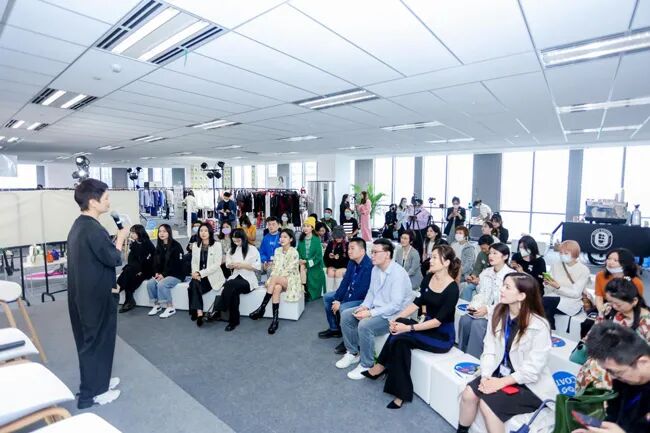 中国纺织工业联合会品牌办副主任、中国服装协会副秘书长兼品牌发展部主任屈飞,高士线业市场总监杨昱清,DADASHOW主理人叶琪峥,LIU EVE 主理人刘祎玮,moi aussi品牌主理人冷清,麦吉拉Mikaela品牌主理人李允儿Mika等行业领导嘉宾、设计师品牌代表出席了本次沙龙。时尚背后的秘密创始⼈/主理⼈,上海服装⾏业协会副秘书⻓刘佩芳担任主持人,来自四十个大大小小的原创自主品牌的五十多位嘉宾受邀到场,中新社、新闻晨报、上海热线、第一纺织网、环球服装服饰网等媒体全程参与,聆听时尚新“青年”们关于“Z世代品牌”的深度解密。