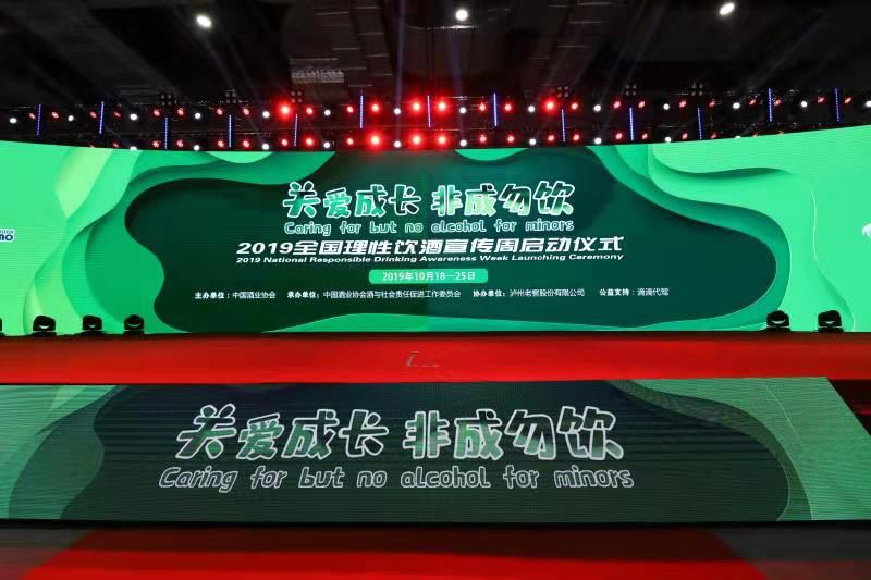 2019年10月18日,泸州老窖携手中国酒业协会,在第十四届中国国际酒业博览会期间举行了2019“全国理性饮酒宣传周”上海主会场启动仪式,正式拉开了本年度全国理性饮酒宣传周活动的序幕。今年的宣传周活动于10月18日-25日在全国范围内开展,主题为“关爱成长、非成勿饮”,向全社会发起呼吁,共同预防未成年人饮酒。