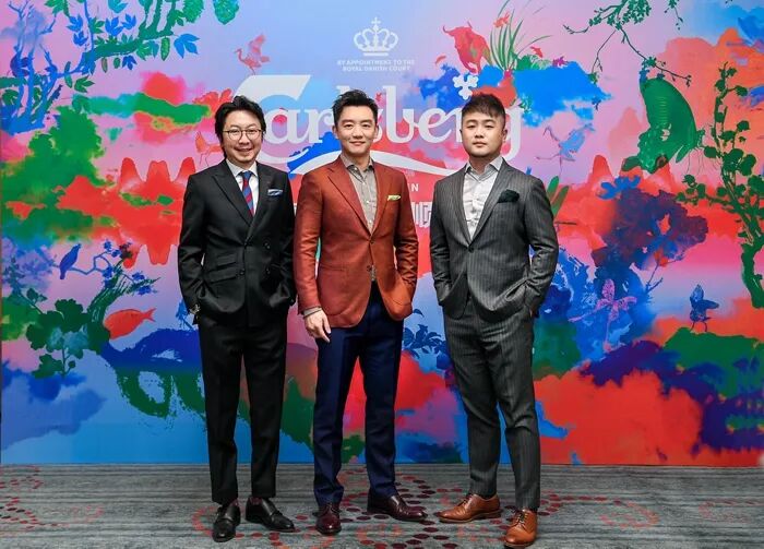 左起嘉士伯中国市场副总裁赵简辉,知名演员郑恺,国际新锐艺术家张广宇