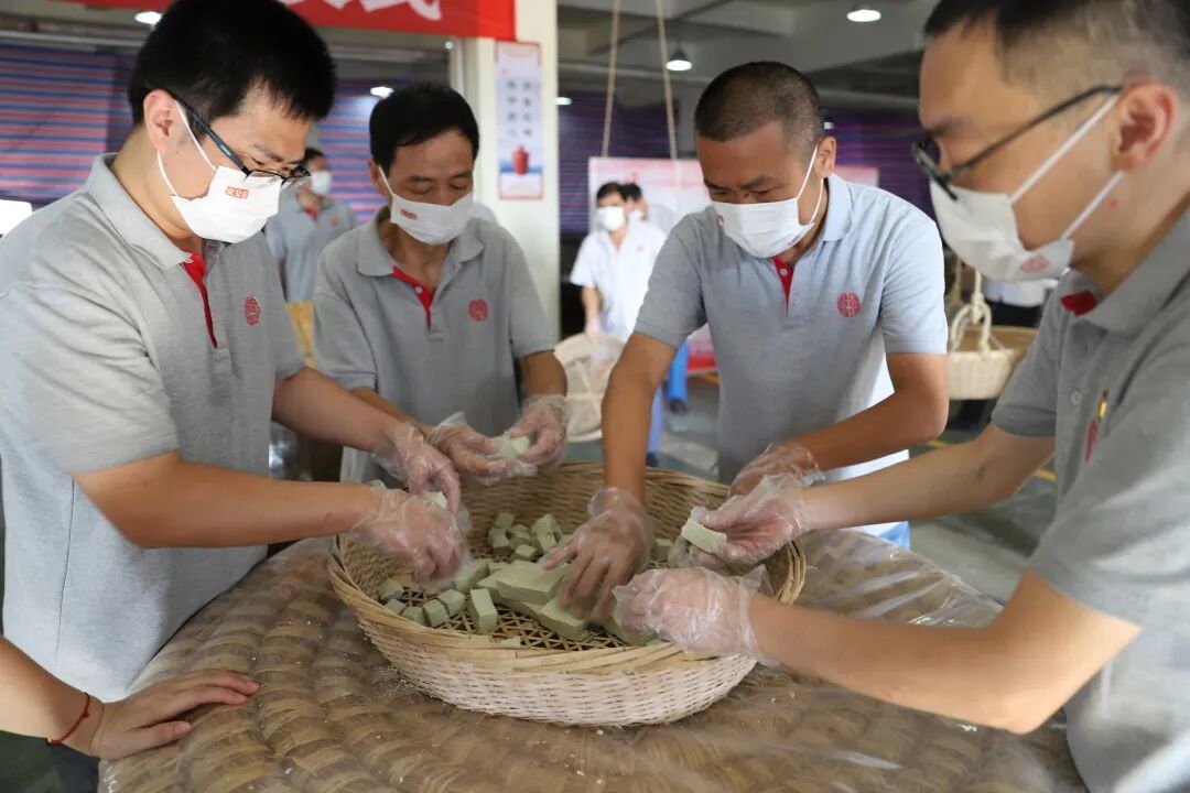 为牢牢把控女儿红酒的“品质密码”,在中国酿酒大师胡志明的带领下,车间技师娴熟地轧粉、摏粉、上框压平、切块裁药、接种、摆药。摆好的酒药还需历经落缸发酵、晒药等环节,才能让酒药内的微生物自然生长,最终催化出女儿红醇香口感。