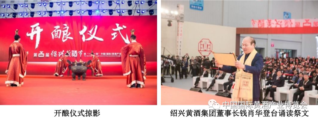 随后还举行了庄重的开酿仪式。中国绍兴黄酒集团有限公司董事长钱肖华登台诵读祭文。古越龙山、会稽山、女儿红、塔牌等 14 家绍兴黄酒企业代表登台共同敬香,绍兴黄酒企业的精英们手联手,心连心,宣读最真诚的誓言"将黄酒产业保护好,发展好" ,共同庆祝冬酿的开始。在醇厚的米香和古朴动听的乐曲中,绍兴酒乡冬酿启动。浸米、蒸饭、落缸、开耙、发酵……千百年来绍兴黄酒传承酿制过程一一展现在人们眼前,独特的开酿仪式,向人们演绎着黄酒发源地的风情。