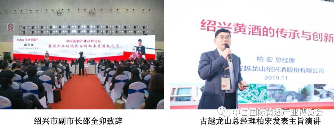 论坛于 11 月 8 日下午在黄酒节现场同期举行,由中国酒业协会常务副秘书长何勇主持。绍兴市人民政府邵全卯在致辞中指出,绍兴市将以中国黄酒之都的成功创建为契机,结合黄酒节、酒业博览会等机会平台着力做好三个坚持:坚持守正。坚守黄酒核心价值,非遗记忆和品牌文化。坚持创新。坚持融合。中国酒业协会理事长王延才在致辞中谈了三点认识和希望:一是价值回归。通过品质、工艺、健康,或者是生态来体现黄酒的价值。二是品牌聚力。打造三到五个龙头品牌,并且形成梯队,突破产业格局的瓶颈和区域消费的瓶颈。三是文化传播。深度挖掘黄酒历史文化内涵,倡导对时尚黄酒、与时俱进,弘扬独具特色的中国黄酒文化,讲好中国黄酒的故事。浙江省政协原主席、全国政协文史和学习委员会副主任周国富先生在主旨演讲《弘扬黄酒文化,创新黄酒产业》中指出:黄酒文化是创新黄酒产业的根和魂,要全面振兴绍兴黄酒经典产业。并建议黄酒产业要整合资源,合而成势,整体之下,合作抱团,各美其美,美美与共。还要创新营销,创造市场,一切以消费者为中心,深化供给侧结构性改革。