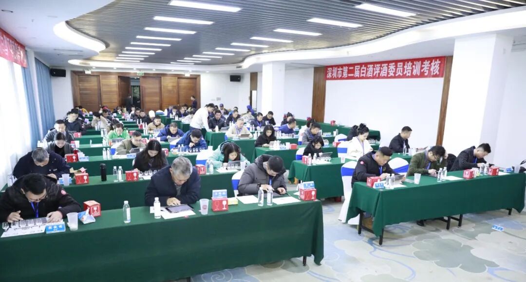 全体学员经过2天的强化培训后,参加评选考试,本次考试时间为一天,分为笔试(闭卷,占总评分20%)与实操(占总评分80%,包括香型/糖化发酵剂/发酵设备、香型质量差排序、重现、再现等8轮实践比拼)两部分构成。两部分成绩均达到及格线后则有资格参与总分排名。总分排名前25名的学员,获得由深圳市酒类行业协会认定的“深圳市白酒评酒委员”资格。之后顺延12名学员,获得由深圳市酒类行业协会认定的“深圳市白酒评酒委员(特邀)”资格。