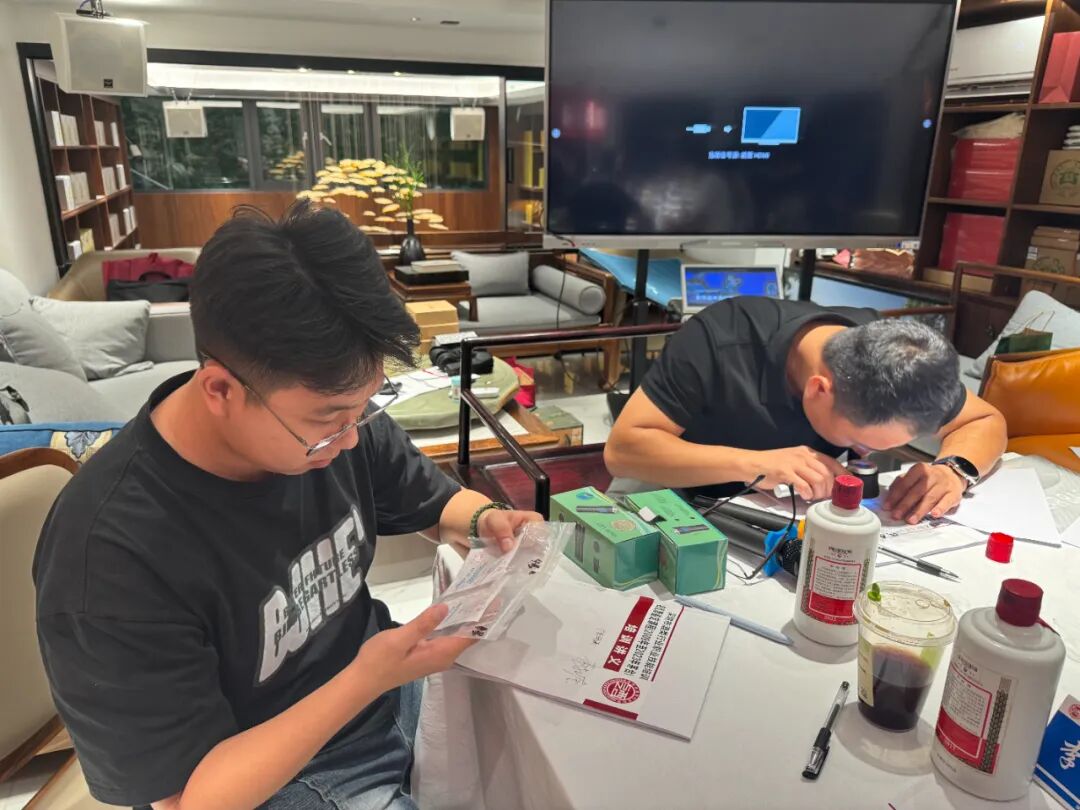 本期培训课程历时2天,分为8个课时,课程围绕2009—2021年贵州茅台酒“普通飞天”进行全方位分享和解析。授课内容包括外箱、封箱胶纸、装箱单、酒瓶外观、胶帽等进行全方位细节辨认,和打孔、换标、拔头、吹箱、材料等作假方式进行实战性鉴定鉴别。