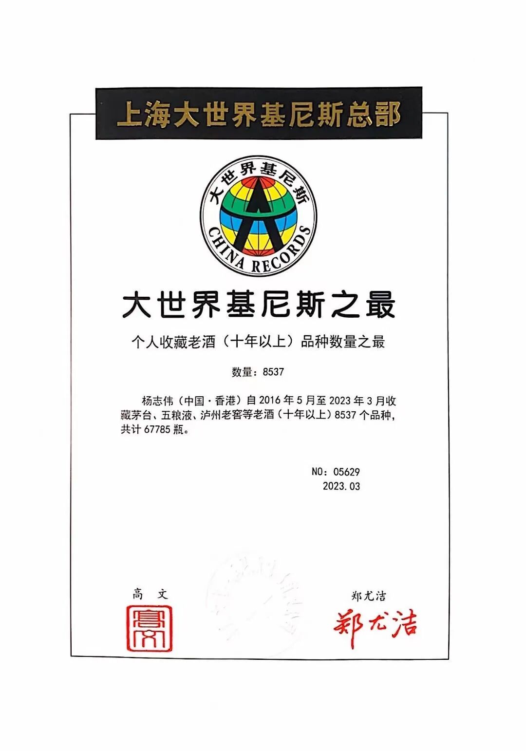 世界第一!深圳酒协副会长单位藏古纳今获颁基尼斯世界记录!