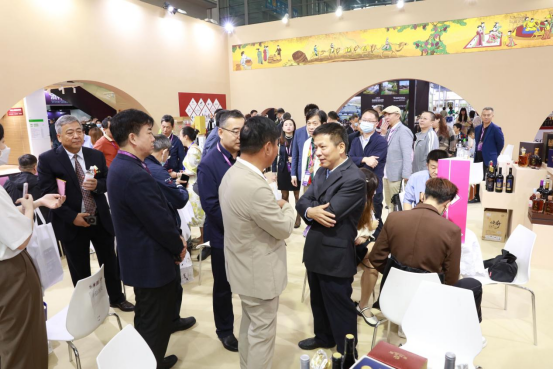 展会现场热闹非凡、亮点频出。新疆天山北麓葡萄酒产区官方展团携18家精品酒庄精彩亮...