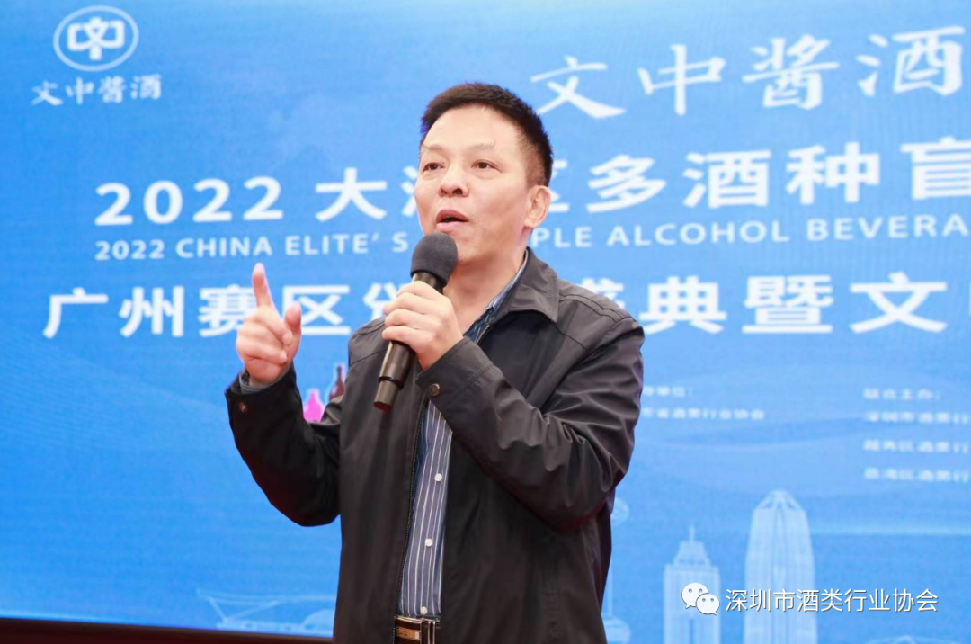 广东省酒类行业协会会长彭洪上台致辞,向到场的领导嘉宾表示热烈的欢迎,同时他表示对此次多酒种盲品精英挑战赛(广州赛区)的成功举办,为我会会员与酒类从业人员提供了一个良好的学习和交流的机会,对酒类行业专业技能人才的培养与发展壮大、以及整体素质的提升起到了积极促进作用。学员们充分展现了我们酒协会员和各酒商代表优良的素质和良好的精神风貌,祝贺所有获奖的选手。并向本次活动总冠名商---贵州文中酒业公司的鼎力支持、兄弟协会深圳酒协的精心组织和安排、对广州市酒协、各区酒协的大力支持,表示衷心的感谢!