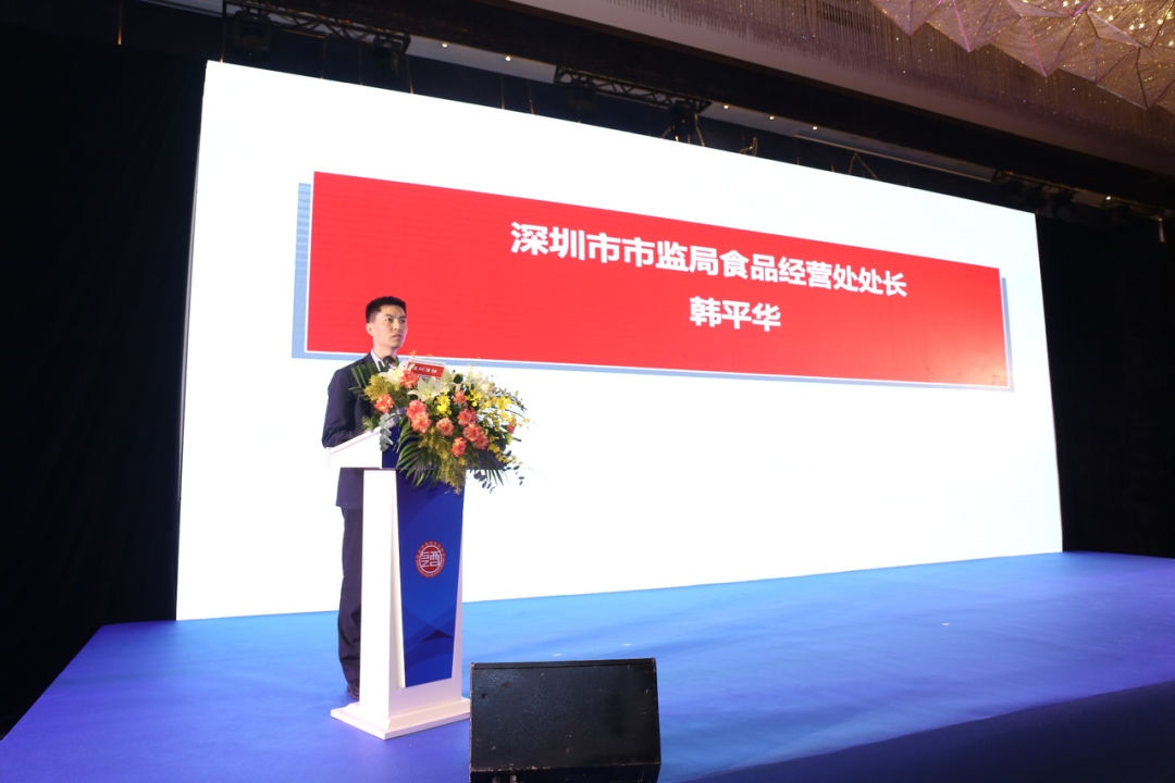 深圳市市场监督管理局食品经营处处长韩平华致辞。韩处长就深圳市市场监督管理局(及食品经营处)使命、职责以及最新有关食品安全建设、食品经营监管等法律法规进行具体说明和分享。深圳市市场监督管理局及稽查局,将会与协会开展更紧密合作,共同构建具有影响力的酒类行业食品安全示范性市场。