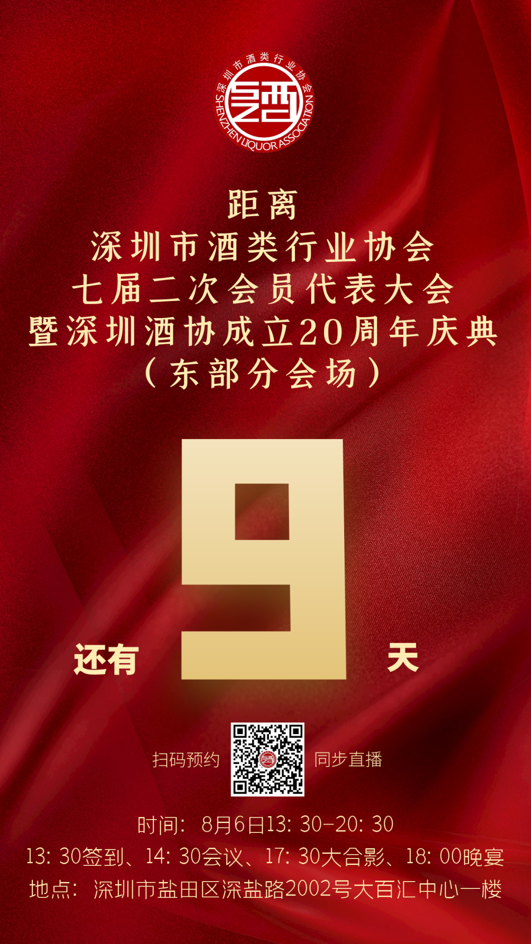 深圳市酒类行业协会定于2022年8月6日举行深圳酒协七届二次会员代表大会暨深圳酒协成立20周年庆典(东部分会场)。现将有关事宜通知如下: