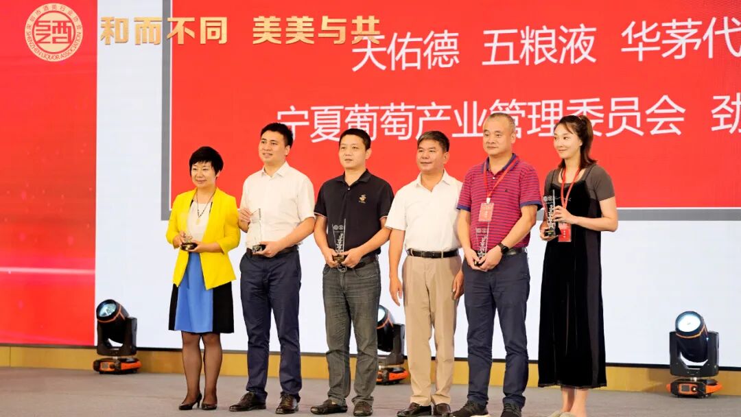 深圳酒协会长李汉强,为天佑德、五粮液、宁夏贺兰红、华茅、劲牌公司颁发“行业发展荣誉奖”。