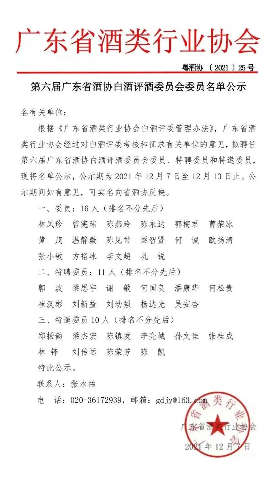 12月4日,广东省酒类行业协会粤酒协【2021】28号文件正式公布《关于聘任第六...