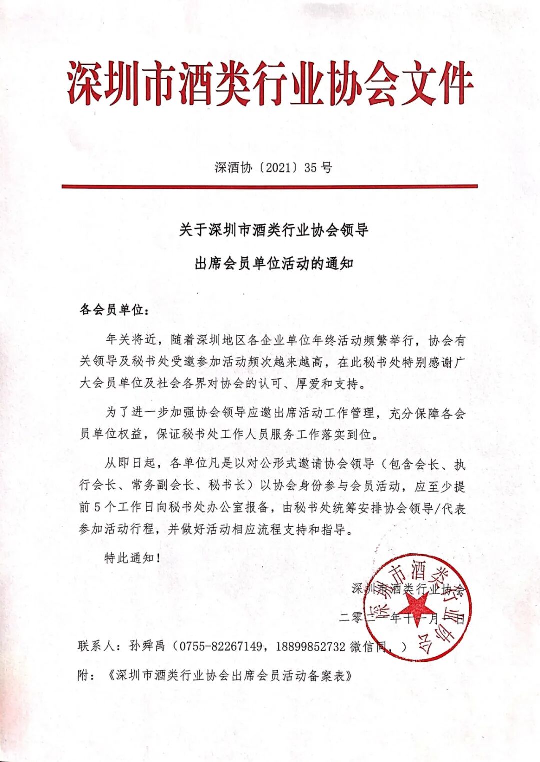 重要通知 | 关于深圳市酒类行业协会领导出席会员单位活动的通知