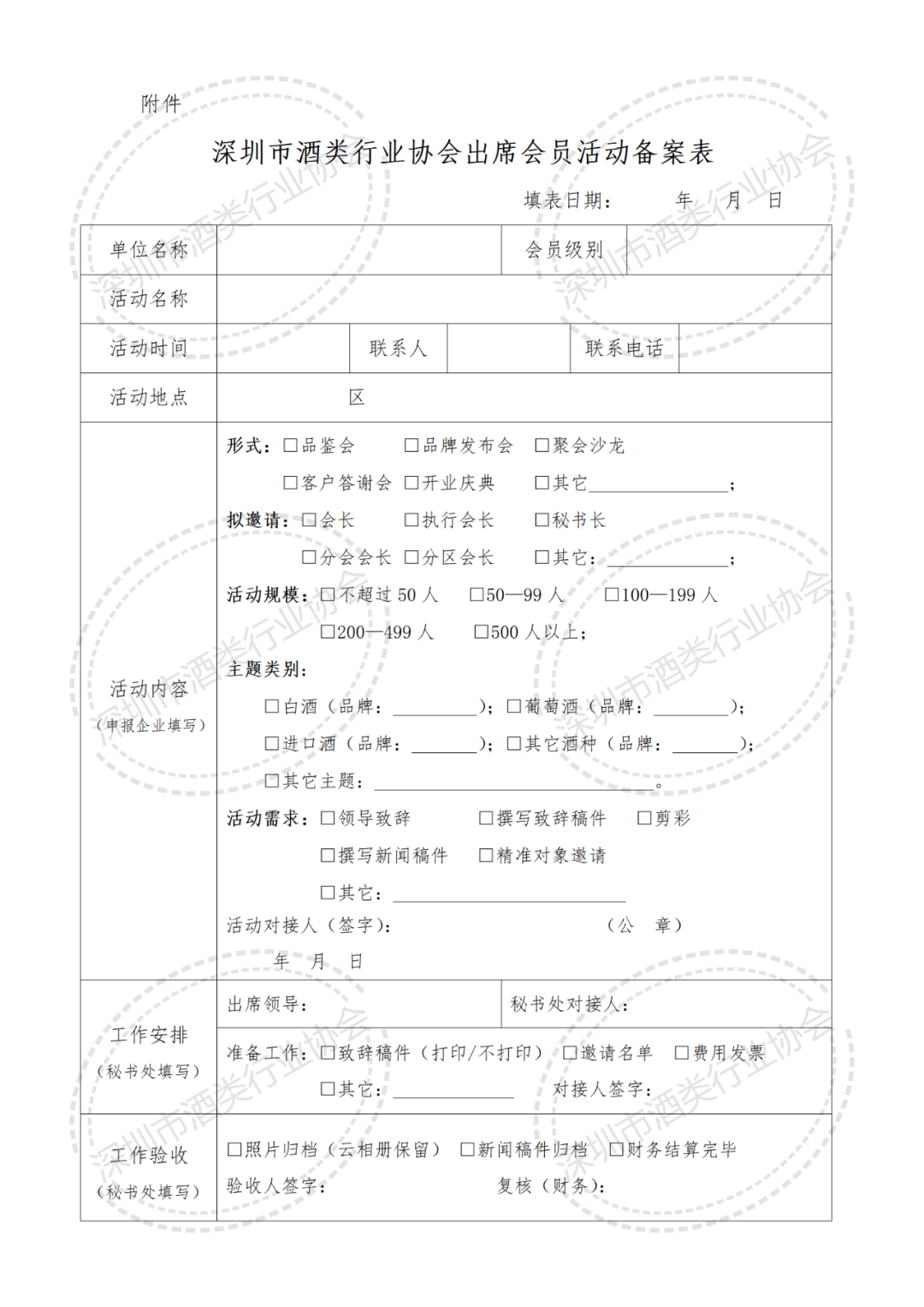 附:《深圳市酒类行业协会出席会员活动备案表》