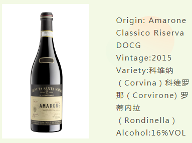 红葡萄:科维纳(Corvina)、科维洛尼(Corvirone)、罗蒂内拉(Rondinella)、莫利纳拉(Molinara)、梅洛(Merlot)