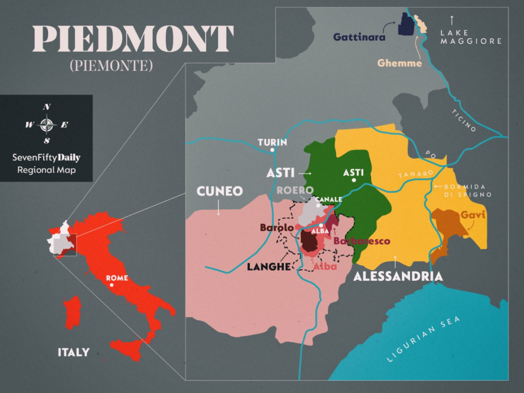 红葡萄品种:巴贝拉(Barbera)、多姿桃(Dolcetto)、弗雷伊萨(Freisa)、布拉奇托、内比奥罗(Nebbiolo)