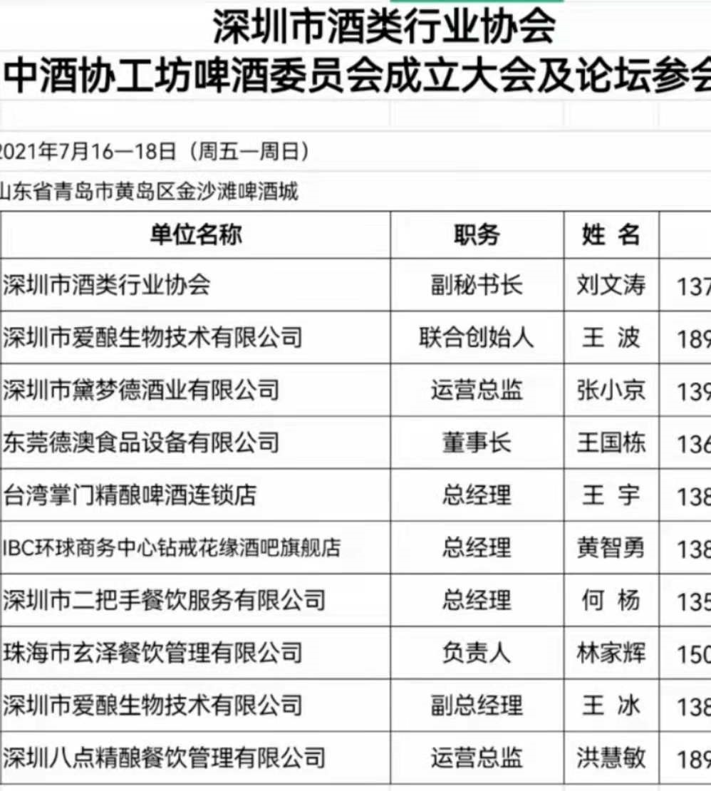 深圳市酒类行业协会副秘书长刘文涛组织十余位深圳工坊(精酿)啤酒经营代表参加了本次大会。