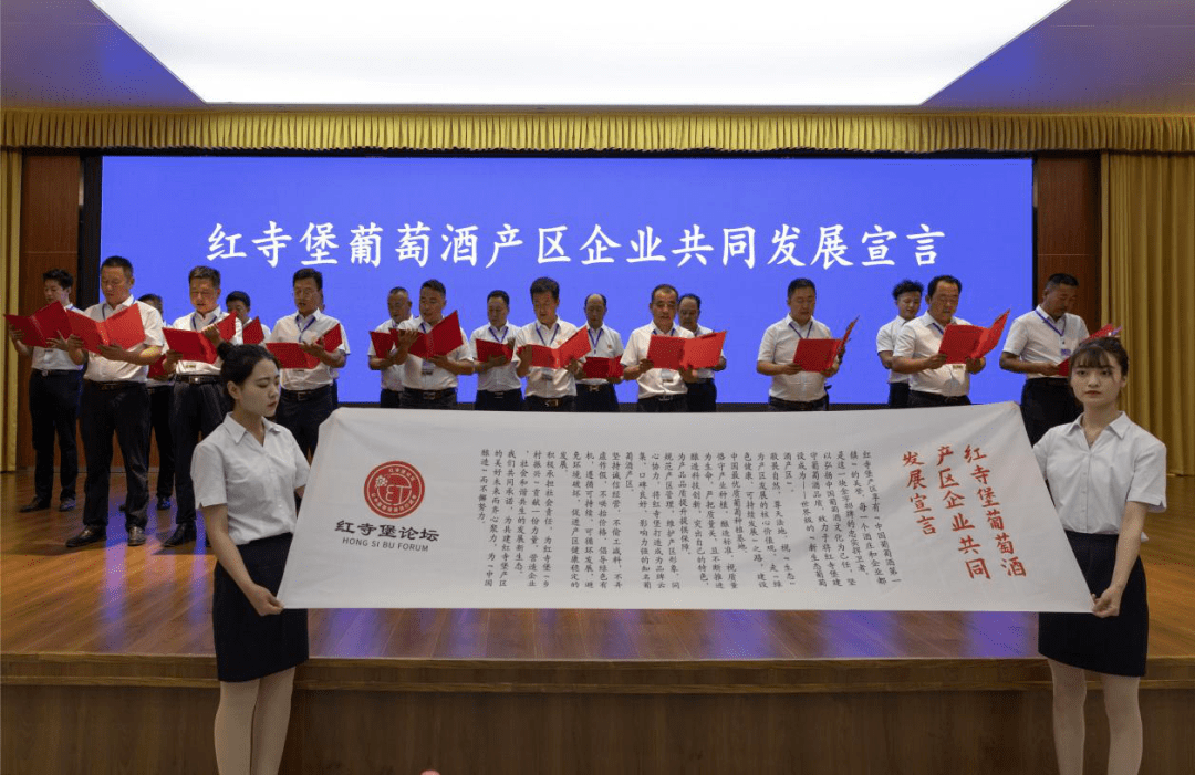 “以弘扬中国葡萄酒文化为己任,坚守葡萄酒品质,致力于将红寺堡建设成为——世界级的‘新生态葡萄酒产区’……“在宁夏回族自治区政协副主席王紫云,宁夏贺兰山东麓葡萄与葡萄酒国际联合会主席郝林海,国务院发展研究中心市场经济研究所副主任漆云兰,中国副食流通协会会长何继红以及来自全国200余位酒商嘉宾的见证下,红寺堡葡萄酒产区正式发布“红寺堡宣言”。红寺堡区红丰农业开发有限公司、红寺堡酒庄、东方裕兴酒庄、罗山酒庄等二十余位红寺堡葡萄酒产区企业负责人上台宣读“红寺堡宣言”,倡议积极维护“中国葡萄酒第一镇”的美誉,成为这块金字招牌的忠实捍卫者。以弘扬中国葡萄酒文化为己任,坚守葡萄酒品质,致力于将红寺堡建设成为——世界级的“新生态葡萄酒产区”。敬畏自然,尊天法地。恪守产业种植,酿造标准,规范产区管理,维护产区形象,坚守诚信经营,倡导绿色有机,为红寺堡“乡村振兴”贡献一份力量,营造企业社会和谐共生的发展新生态。我们共同承诺,为共建红寺堡产区的美好未来而齐心聚力,为“中国酿造”而不懈努力!在随后的红寺堡葡萄酒产业发展论坛,以“转型·变革·创新”为主题,汇聚行业专家、实战名将、创新先锋,联手业内外专家、知名酒商,共同把脉行业走向,构建了一个思想交流平台,创造一个有力度、有温度的思想论坛。会上,红寺堡区政府代表、业内外专家、知名葡萄酒商以及红寺堡葡萄酒产区酒庄庄主等同台亮相,围绕“国产葡萄酒行业如何突破困境、走出低谷”,“酒商如何变革、创新”等议题展开讨论,共谋国产葡萄酒的破局新思路和发展新路径。