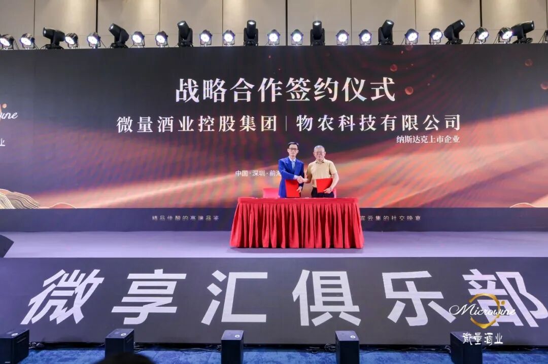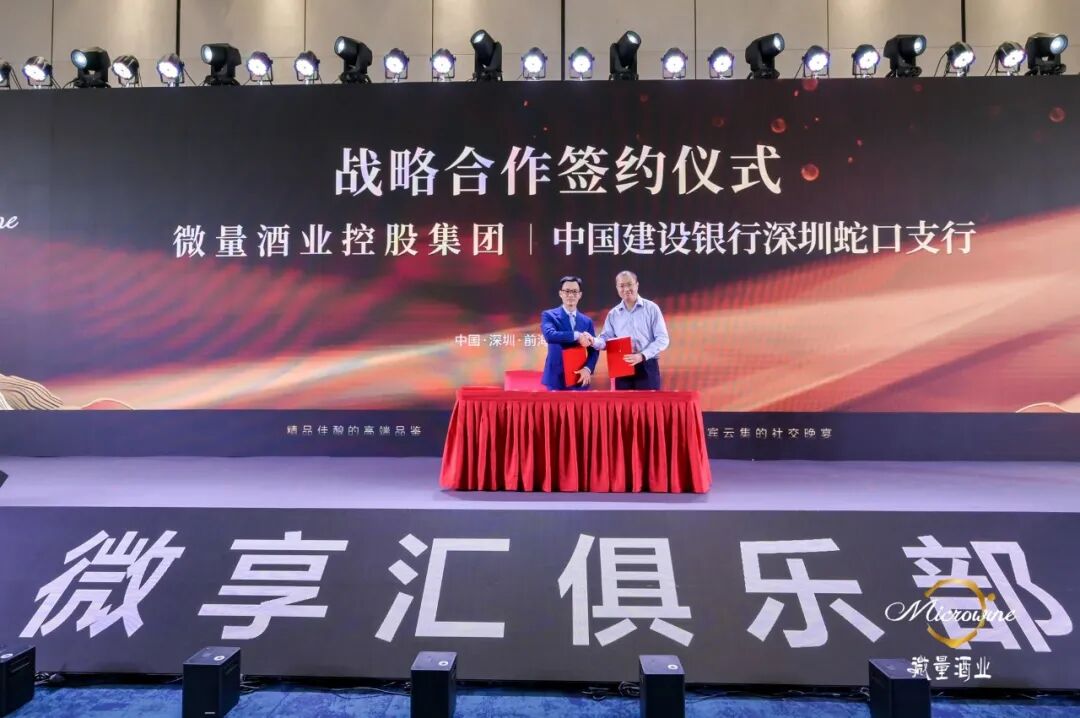 签约环节,进行了微量酒业加入深圳市酒类行业协会的授牌仪式,微量酒业与建设银行深圳蛇口支行签订金融服务战略合作协议,与纳斯达克上市企业物农网签订酒品供应战略合作协议。