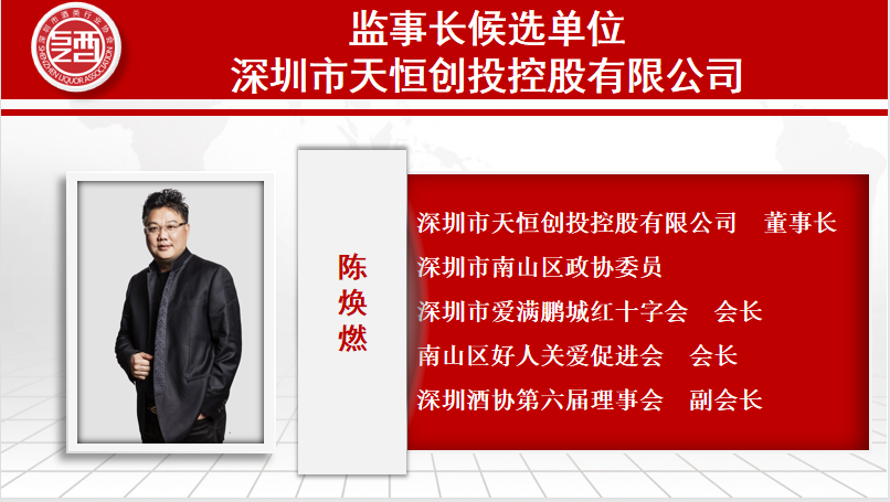 推选陈焕燃,为深圳市酒类行业协会第七届理事会监事长;