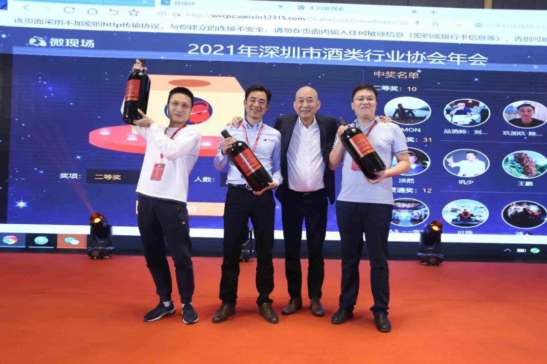 深圳市酒类行业协会执行会长张铁军,为2020年度深圳酒类行业发展过程中,作出重大贡献和成绩的“酒业菁英”颁奖。特别感谢黄峰酒业(福田区仁酒总经销)、大马酒业(深圳)、融通国际、沙商贸、经典好年、广东醉之仙酒业、佑恩实业、张裕股份、华昱机构、招商圣约、怡天醇、蓬鹏实业、北京千杯醇商贸、广东欧蒂诺电器、广东九界、四川仙谭酒厂、汉御坊、新龙记、盟潮实业、张支云酒业集团、粤强臻品等单位为本次晚会提供总计价值为15万元的抽奖奖品!