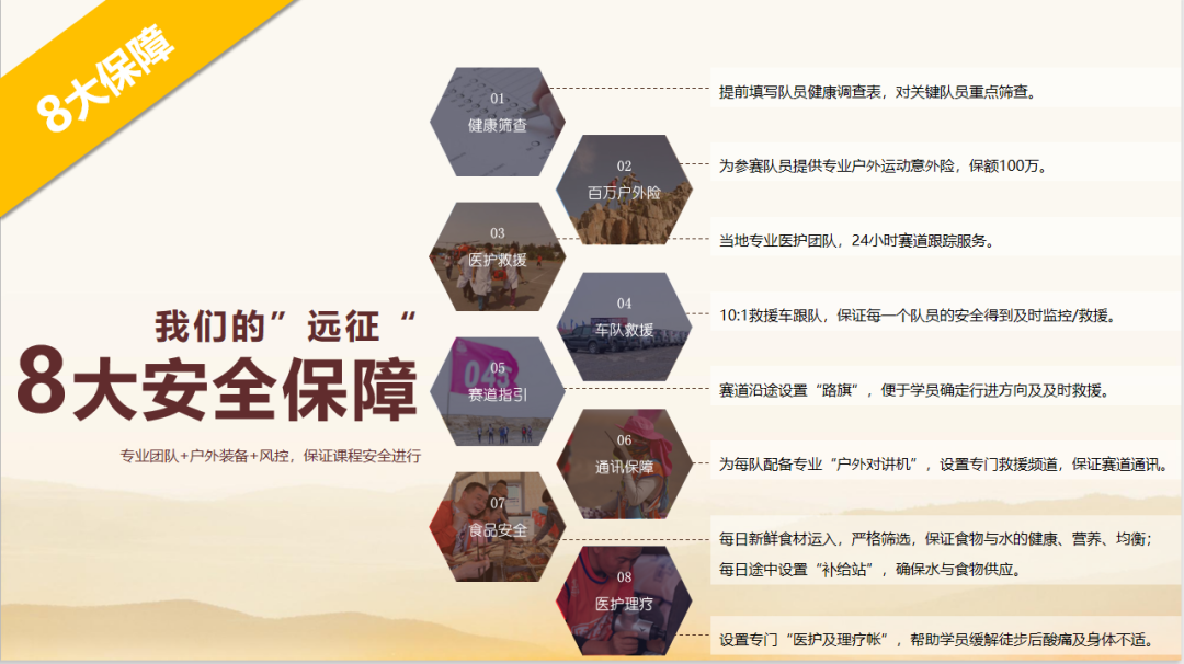 为了确保所有“远征军”战士的绝对安全,我们特别指定了全面、专业、高效的安全保障方案,包括: