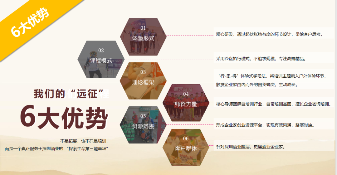 本次远征为深圳市酒类行业协会历时3月,结合深圳酒业市场发展的实际情况和需求,为深圳酒类行业全新打造。在徒步过程中引入的体验形式、课程模式、理论框架、师资力量、资源对接、客户群体乃至安全保障方案……