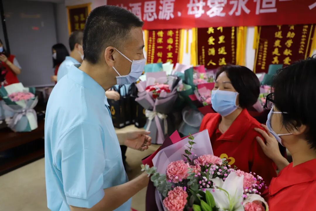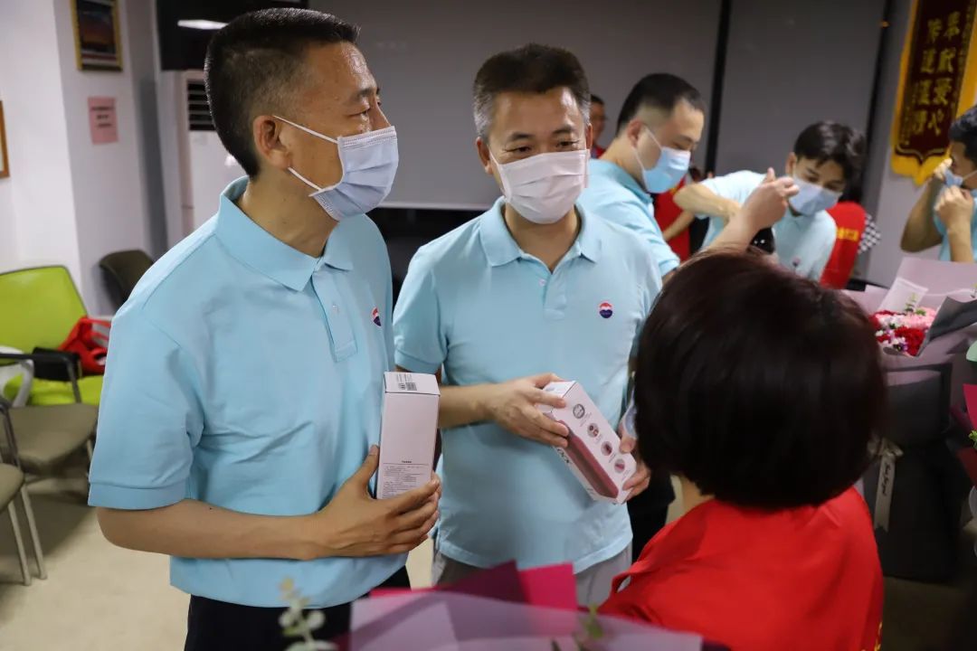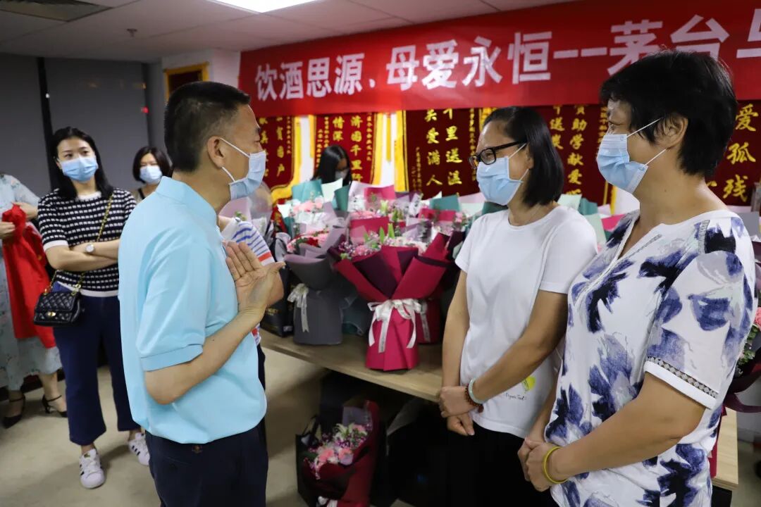 5月9日,母亲节来临之际,为弘扬中华民族优秀传统美德,表达对母亲的尊敬和关爱,努力践行新时代文明实践精神,积极推进女性巾帼建功,深圳市嘉鑫辉煌投资有限公司举办“饮酒思源、母爱永恒——茅台与爱同行”慰问活动,董事长陈金权、总经理陈少锋、传承人陈锦忠、陈仕伟等一行莅临罗湖区个私企业义工队,慰问社区母亲群体,为他们送上鲜花与慰问品,并致以崇高的敬意和节日的祝福。
