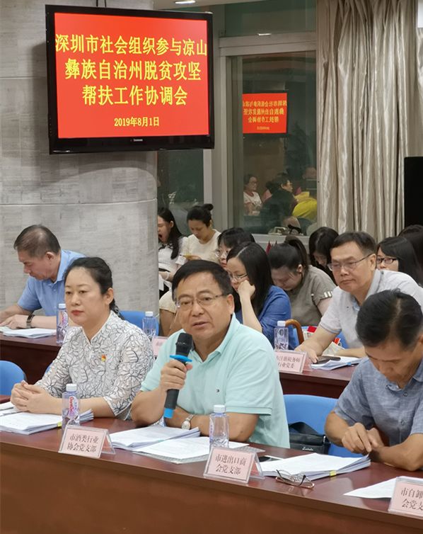 8月2日,深圳酒协受邀作为社会组织代表参加深圳市民政局组织召开的“深圳市社会组织参与凉山彝族自治州脱贫攻坚帮扶工作协调会”并发言。在本次由市民政局号召,市慈善会协同支持的对口扶贫攻坚募捐中,深圳酒协组织并发动会员捐款45万元。深圳酒协秘书长杨克建在发言中表示,对口帮扶不仅仅是捐钱,更重要的是要让每个人看到钱物落到实处,让捐助人安心,让受助人暖心,让广大社会感受到我们的爱心。