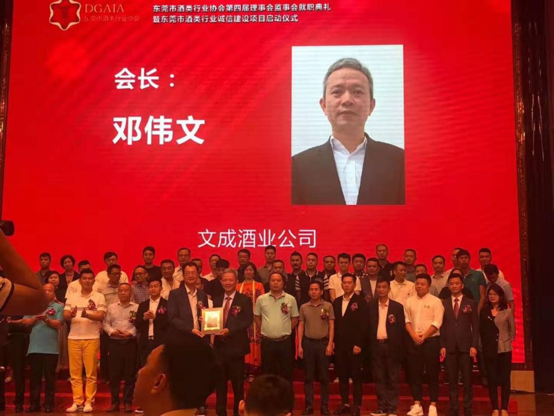 8月12日,东莞市酒类行业协会换届选举产生第四届理事会隆重召开。文成酒业公司董事长邓伟文当选第四届理事会会长!深圳市酒类行业协会表示热烈祝贺!