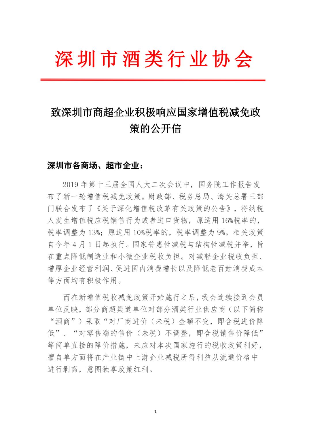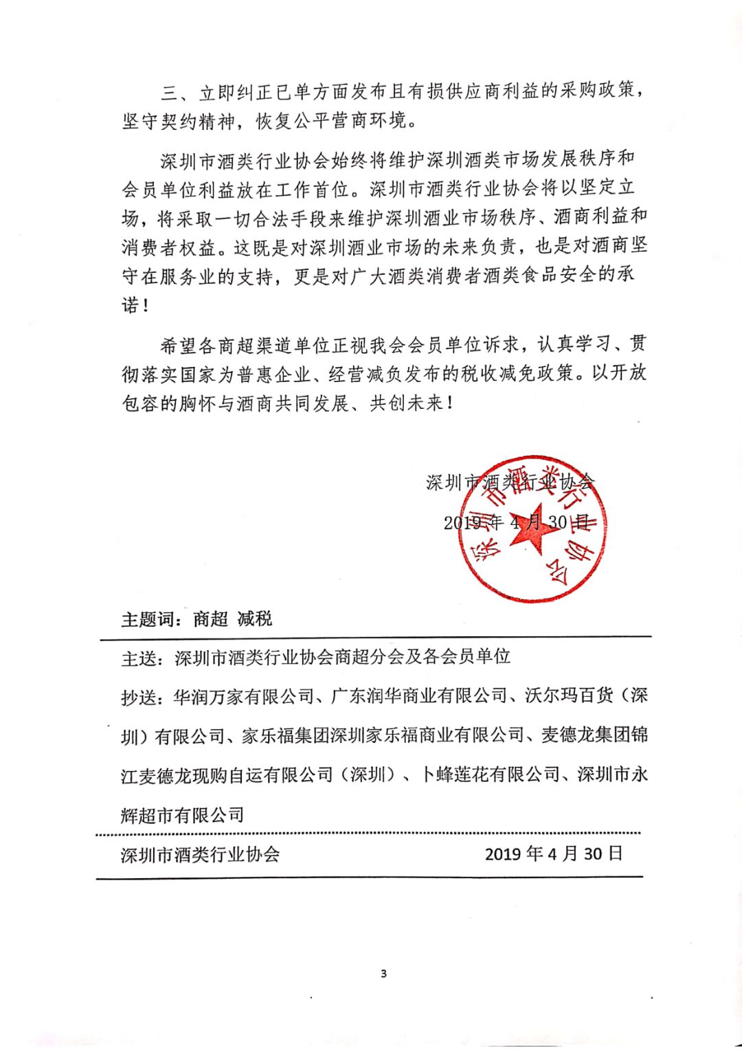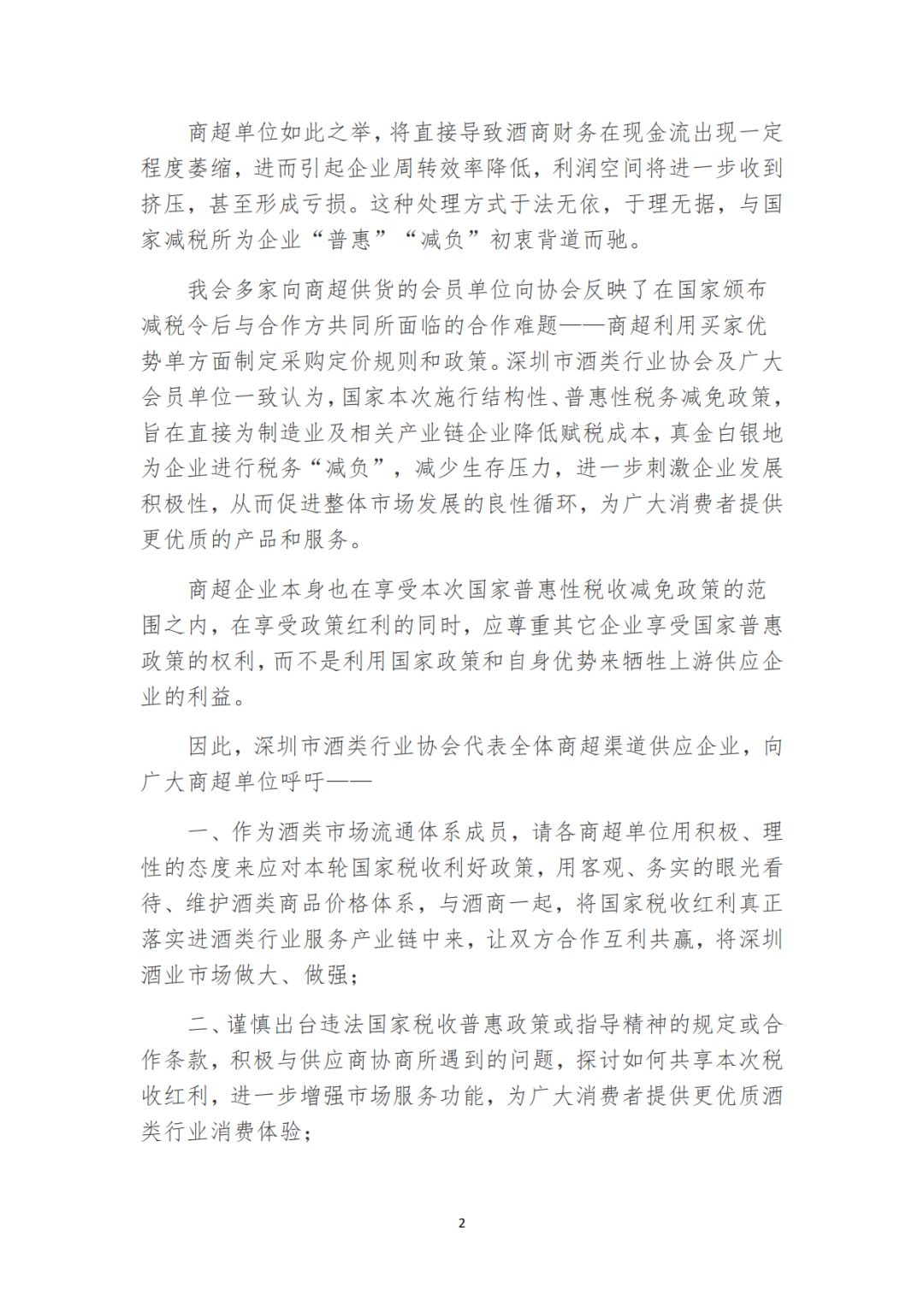 深圳酒协|致商超公开信