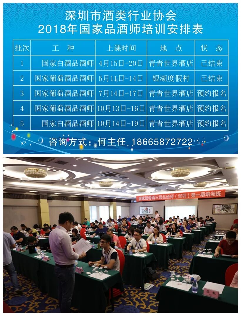 国家葡萄酒品酒师第二期培训班开始招生,定于7月14日至17日在南山青青世界酒店开课,学员通过“品酒师”的有关理论和品酒技能培训和考试后,合格者可获得人力资源和社会保障部颁发的《品酒师职业资格证书》,并纳入国家品酒师统一管理,欢迎广大葡萄酒类从业者及爱好者咨询报名。