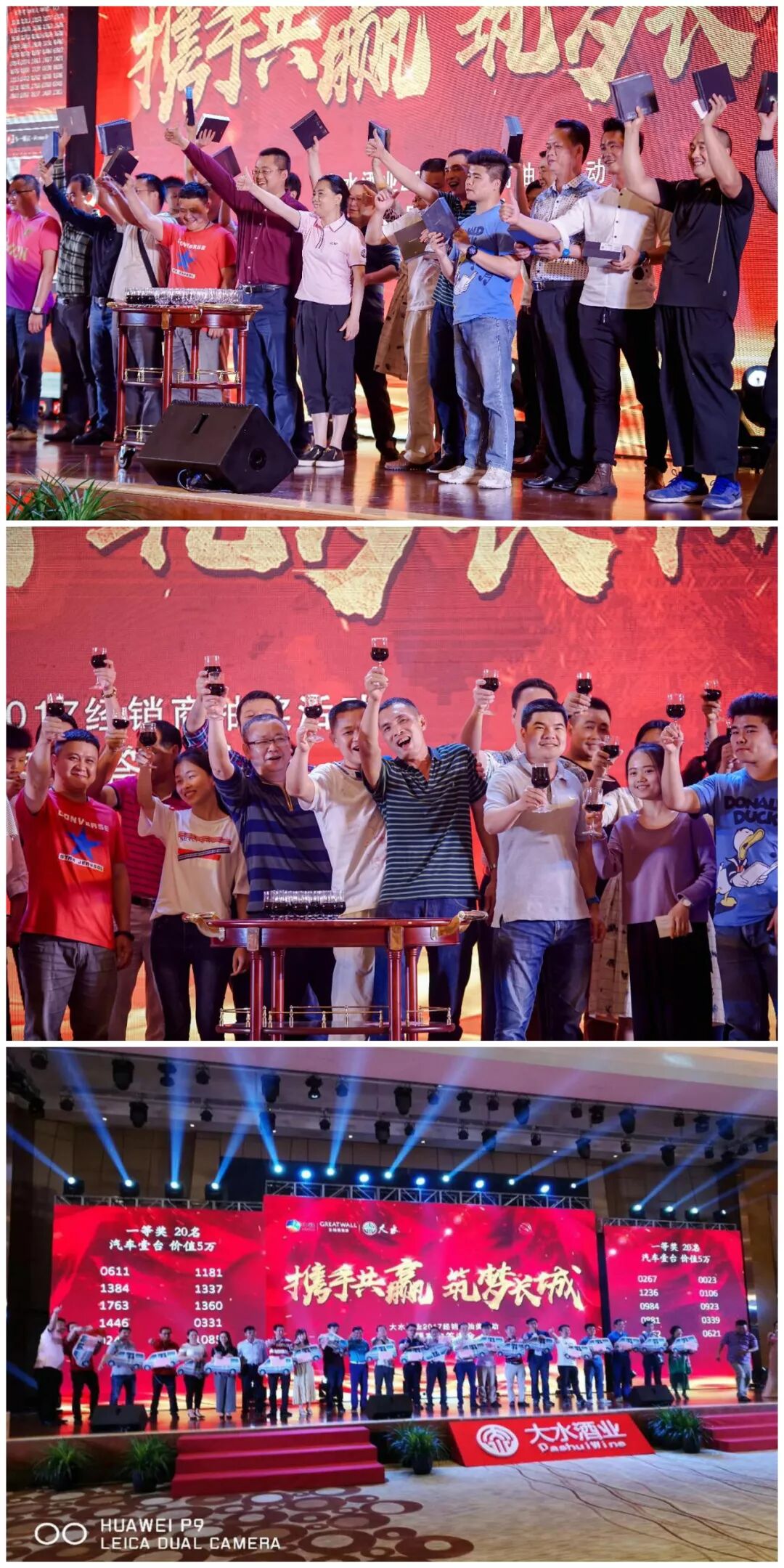 至此,大水酒业2017经销商抽奖活动暨客户答谢会圆满落下帷幕,同时也标志着2018经销商抽奖活动正式启动:自2018年3月26日起至2019年3月25日止,凡从大水酒业购进产品金额每六万元将获取抽奖券一张并依此累积计算,凭抽奖券即可参与大水酒业2018经销商抽奖活动,让我们期待明年再相见!