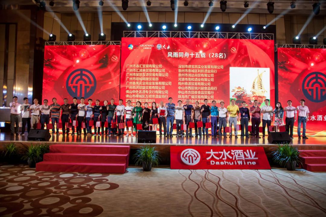 岁月如歌,跋涉似舞,大水酒业自2001年成立至今,走过了18年的风雨历程,正是由于经销商的信任和支持,让大水酒业经受住了各种桃战和考验,收获了成长。为感谢经销商朋友始终不离不弃长久相伴,大水酒业还特设风雨同舟十五载奖项,表彰合作15年以上的经销商朋友。