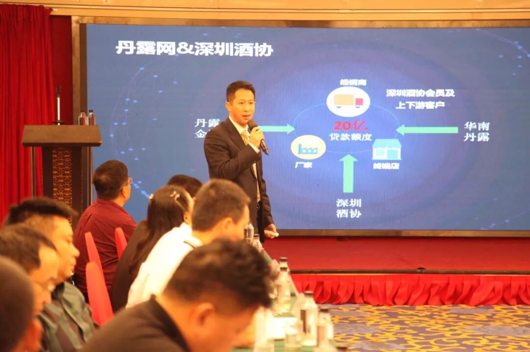 酒协理事单位华南丹露网在会上向大家介绍了丹露20亿供应链资金使用条件,为各位酒商的发展带来了福音。