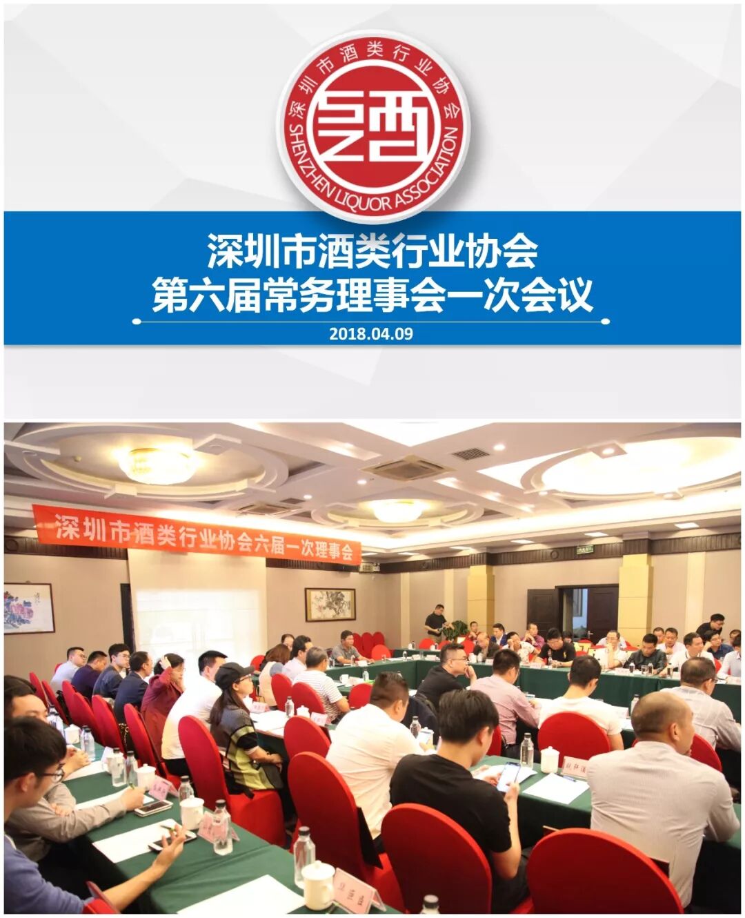 2018年4月9日下午,深圳市酒类行业协会第六届理事会第一次会议在深圳银湖度假村贵召开。深圳酒协75家理事单位代表参加本次会议。
