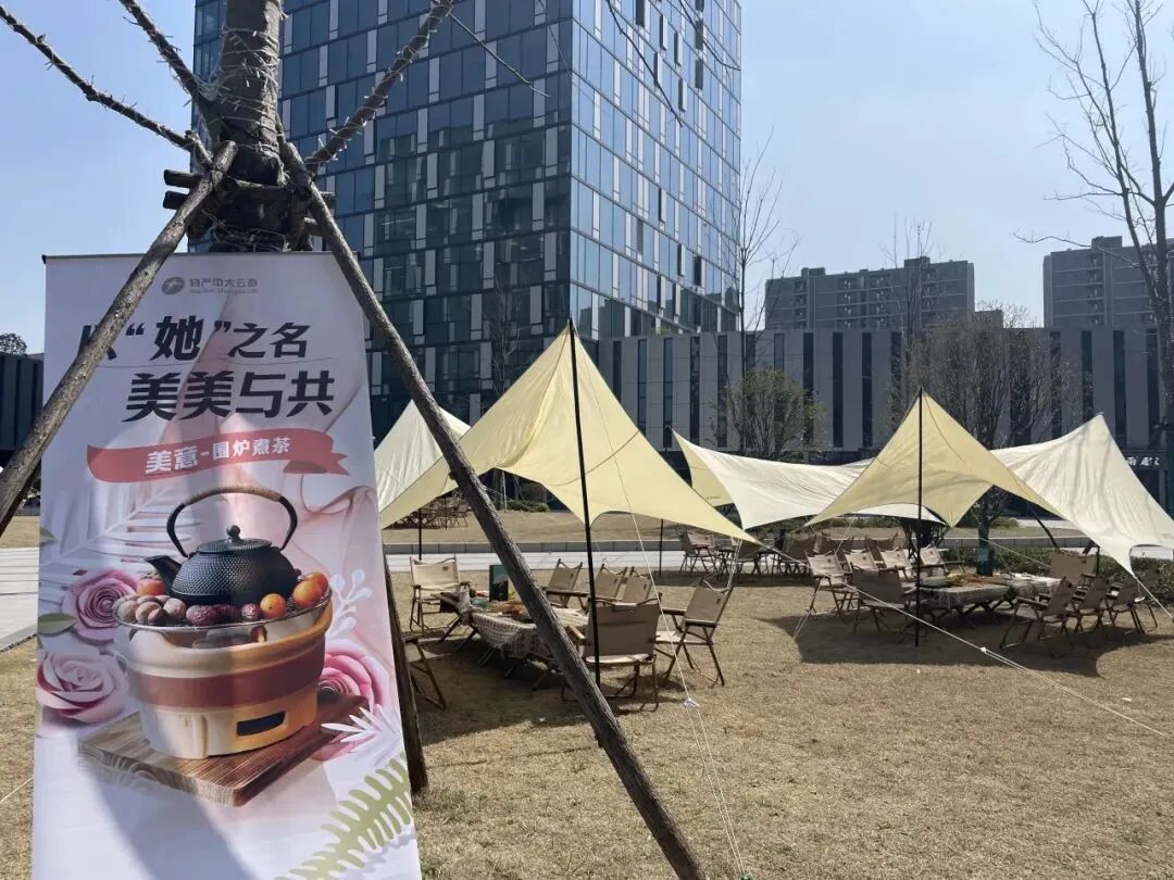 为了让女神们更好感受春风惬意,尽享节日氛围,我们在物产天地中心园区搭建天幕,围一方天地,生一炉烟火,赴一场女神节的约会,感受“人间烟火”“岁月静好”的煮茶时光,闻茶香,生暖意,美好共生。