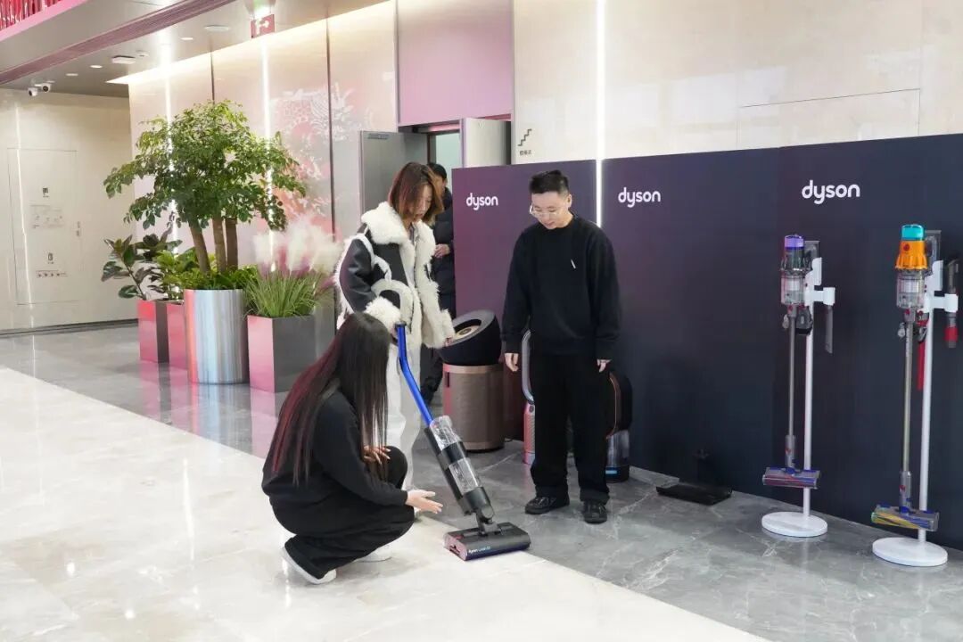 此外,现场还设置了戴森全线产品供园区员工体验。吹风机与美发棒能带给人如丝般顺滑的发丝体验,打造魅力四溢的发型;强大的吸尘器与洗地机将展现出高效的清洁能力,让家居环境焕然一新;空气净化器则默默守护着家庭空气质量,让呼吸更加健康、舒适。