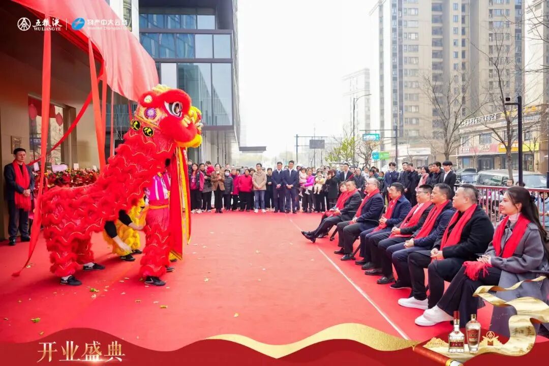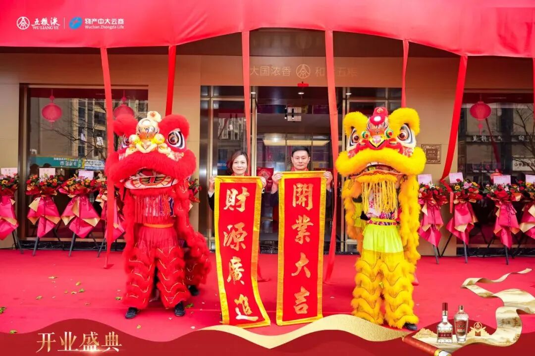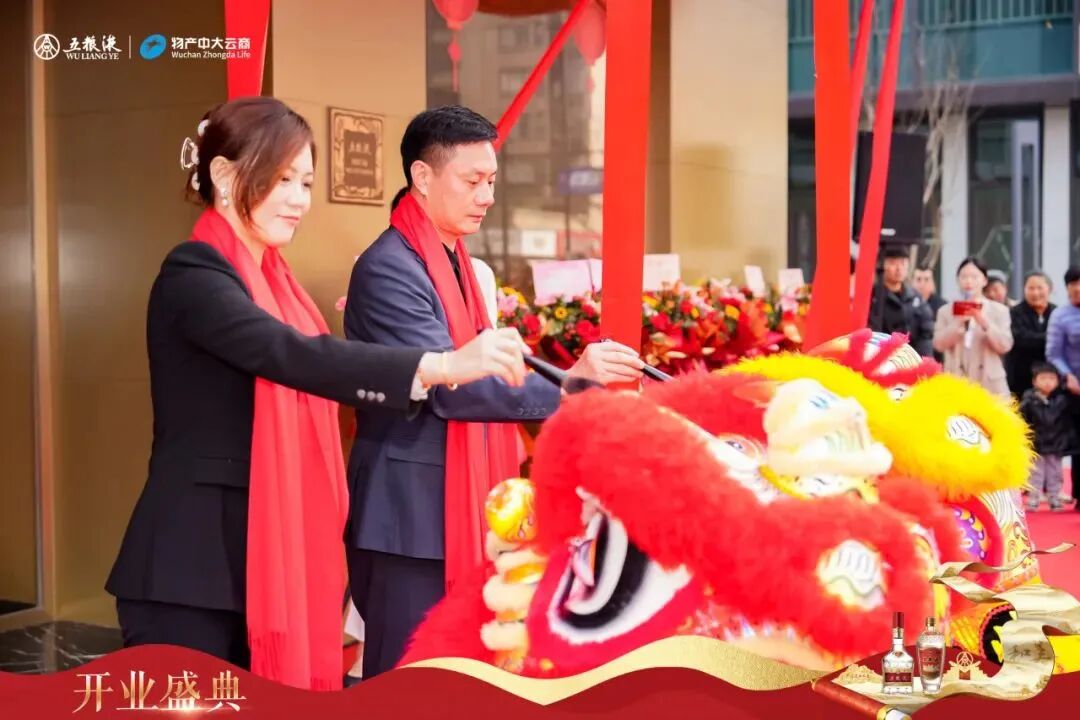醒狮采青,生意兴隆;礼炮齐鸣,财源茂盛。10点58分,在现场嘉宾的倒数声中,徐斌毅携主礼嘉宾共同为五粮液第五代专卖店开业进行剪彩和揭牌,祝贺专卖店开业大吉。