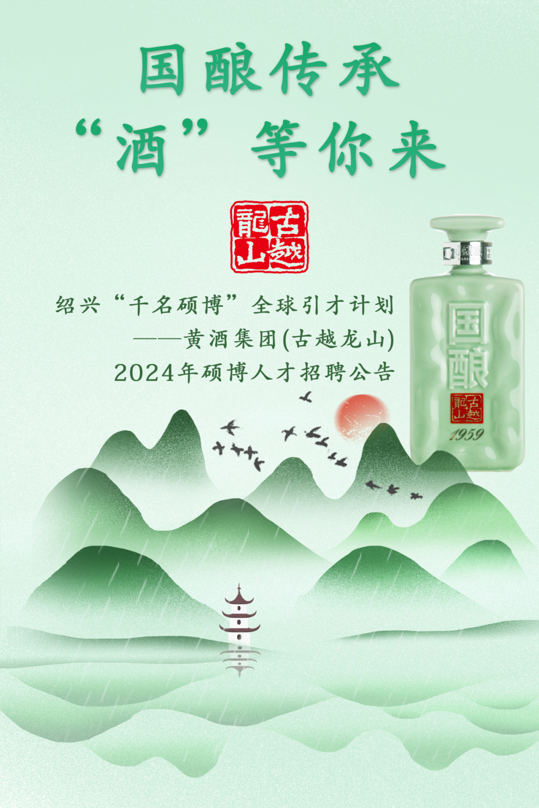 企业招聘⑤ | 黄酒集团(古越龙山)2024年硕博人才招聘公告