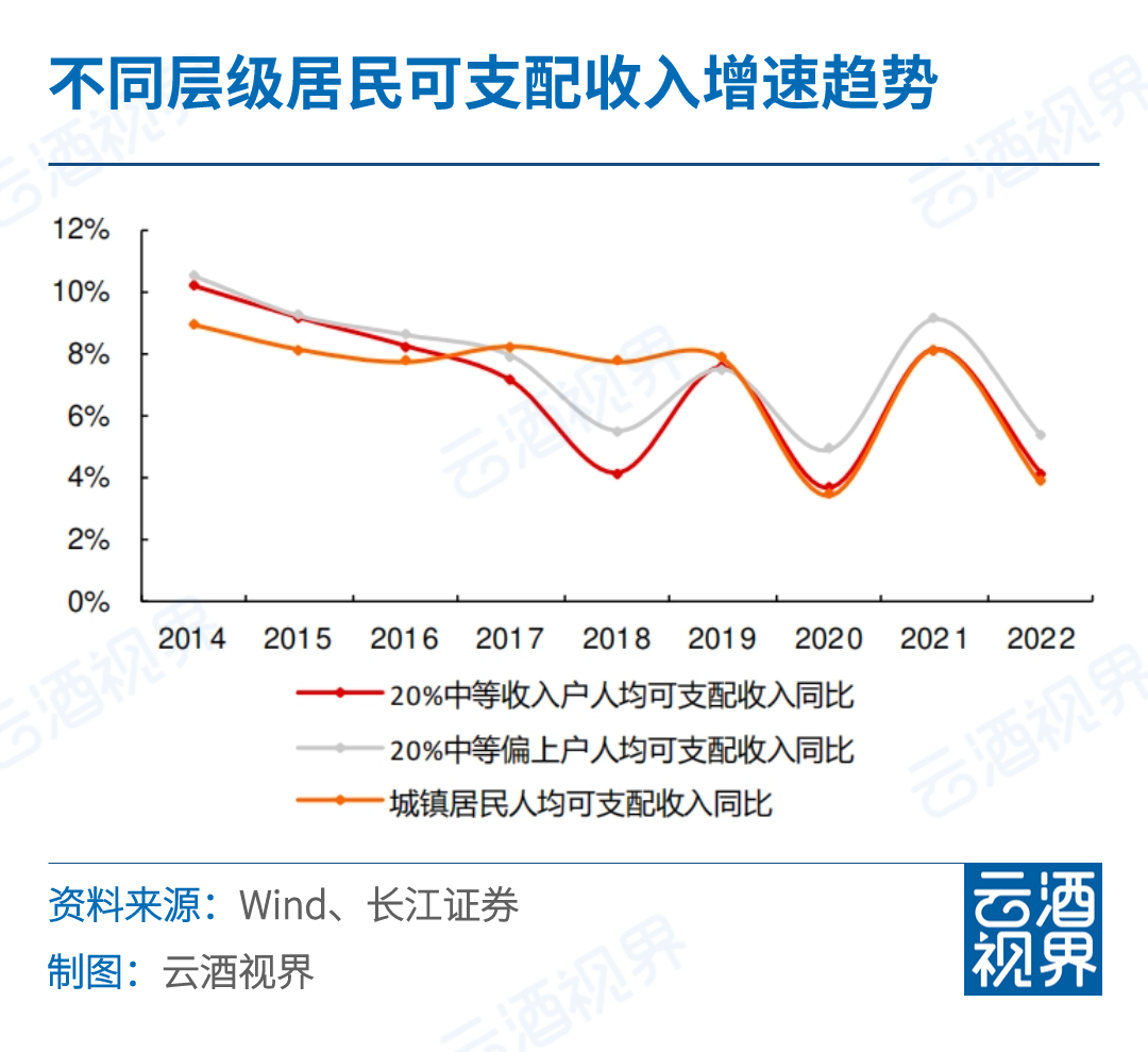 云酒·中国酒业品牌研究院高级研究员、独特咨询创始人王伟设认为,600-800元次高端白酒遇冷,300-500元价格段热销,反映出中产白领消费者出现分级,大部分人更看重性价比,导致品牌品质兼具的剑南春、红花郎、水井坊等亲民的次高端产品,被更多中产消费者追捧。