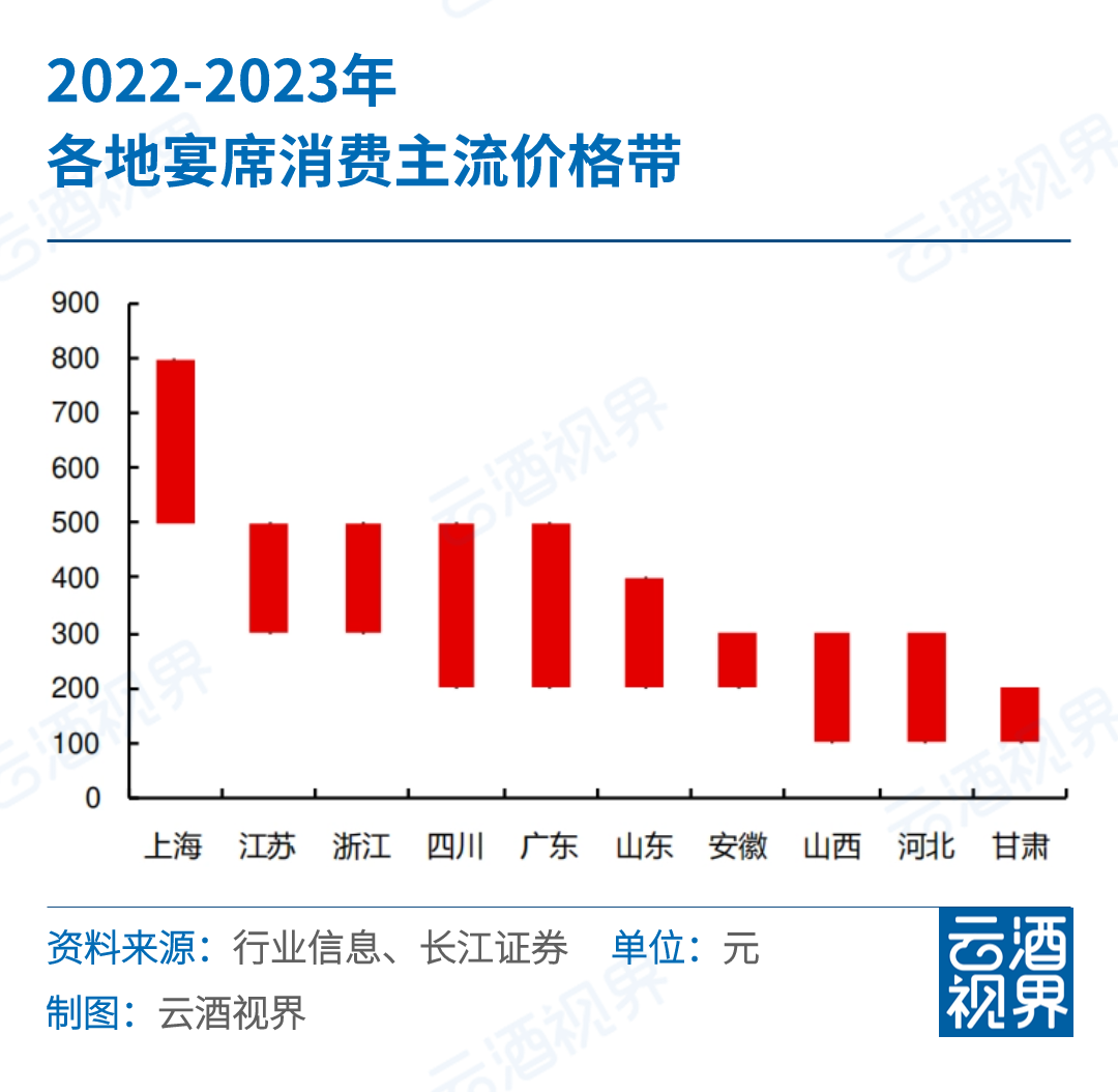 400+元价位段扩容。云酒头条在成都、郑州等地调研发现,经过价格上调,红花郎、剑南春都在从每瓶300-400元向400+元扩容。在广州,汾酒青花20终端表现价400多元,销量持续增长,未来几年,400-500元很可能成为次高端白酒一个热点。