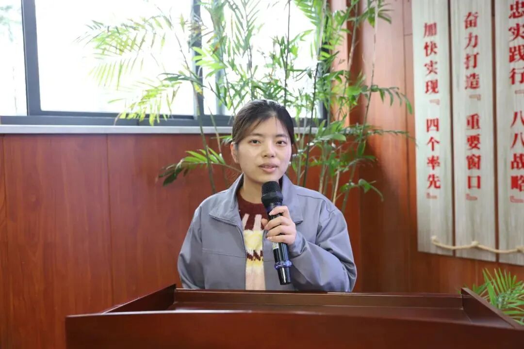 接着,班会公布了2023年度班级纳新人员名单,共有5位优秀员工加入到“启航班”大家庭,涉及产品开发部、办公室和销售公司等三类岗位。