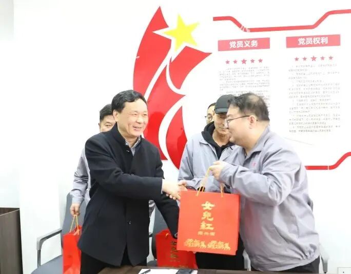 黄酒集团(古越龙山)董事长孙爱保赴女儿红公司,走访慰问各职能部门及生产一线员工,向大家致以新年问候,送上开工礼物。古越龙山副总经理、女儿红公司董事长胡志明陪同。