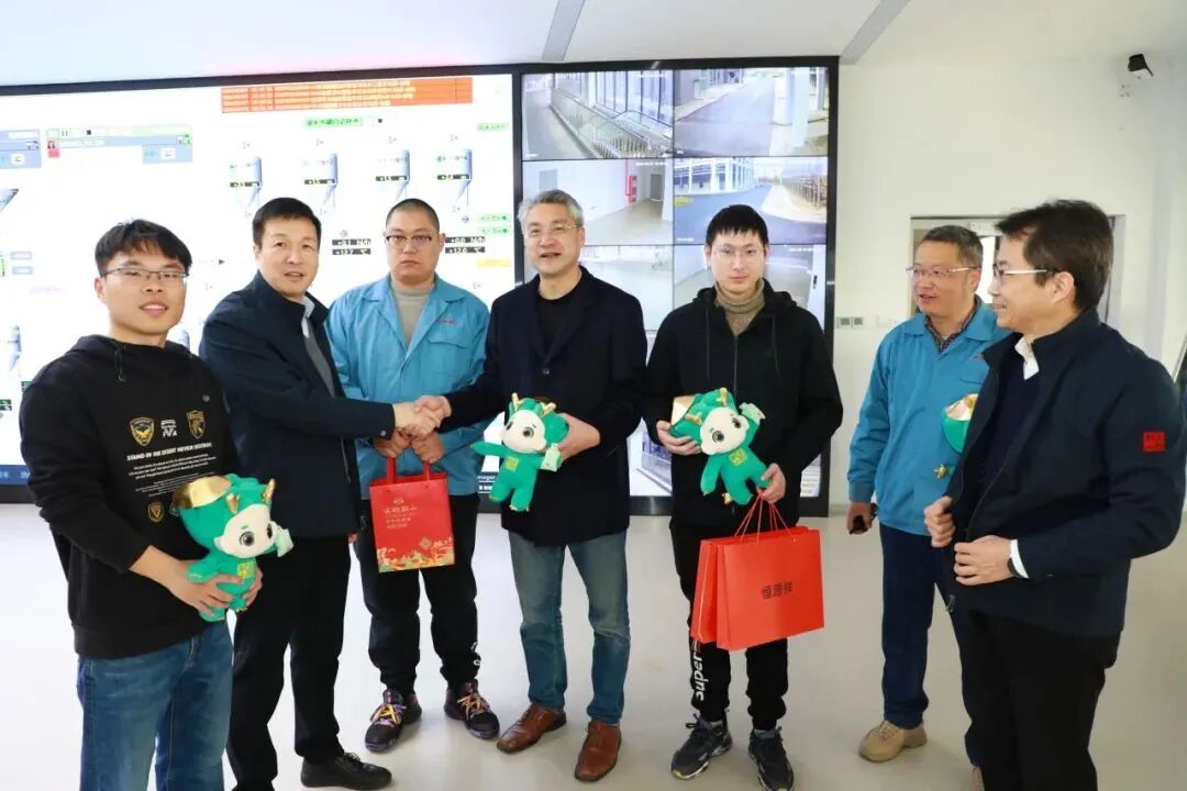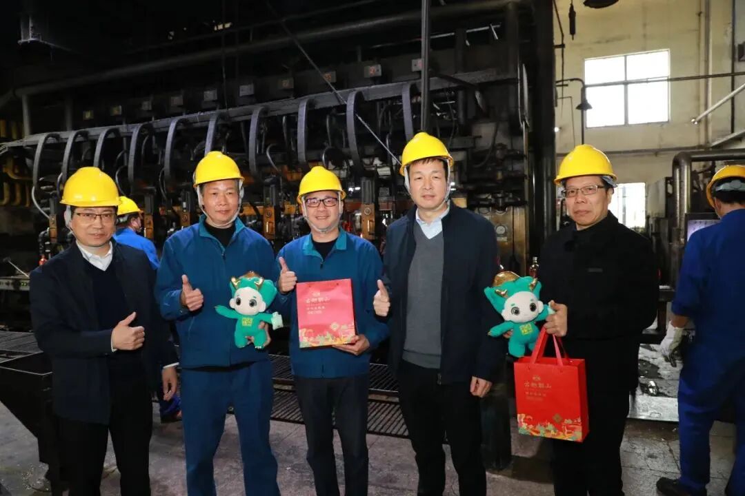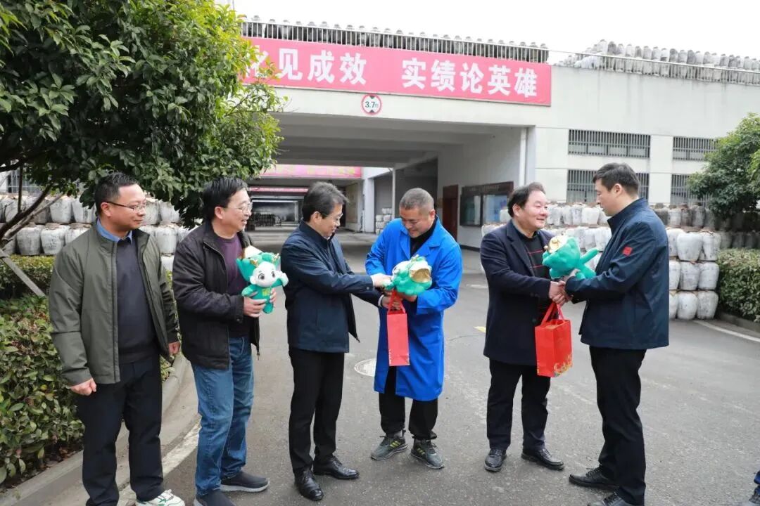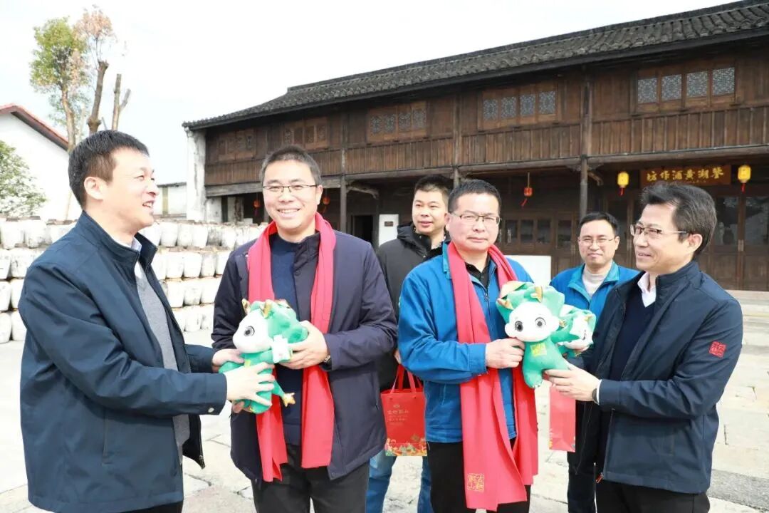 公司领导徐东良、杨文龙、柏宏、吕旦霖、刘剑、徐岳正、万龙等分赴销售公司、鉴湖酒厂、黄酒产业园、玻璃瓶厂、酿酒一厂、国家黄酒工程技术研究中心、古越龙山酒厂、黄酒博物馆等,看望慰问一线员工,给员工们送上古越龙山“小青玉”吉祥物和开工礼物。
